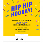 Celebrate milestones by wishing your customers a happy birthday or anniversary to let them know that you care. Build a positive relationship with your customers by giving them an offer on that special day.